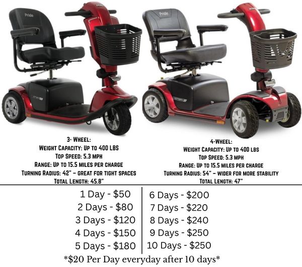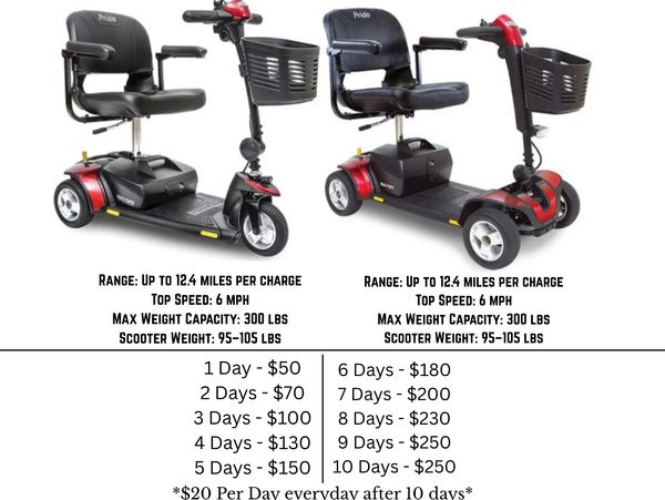 You can reserve your mobility equipment rental through our website or by calling/texting us directly.
